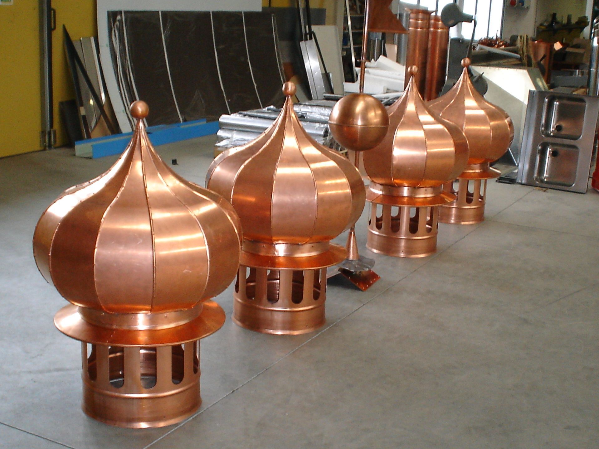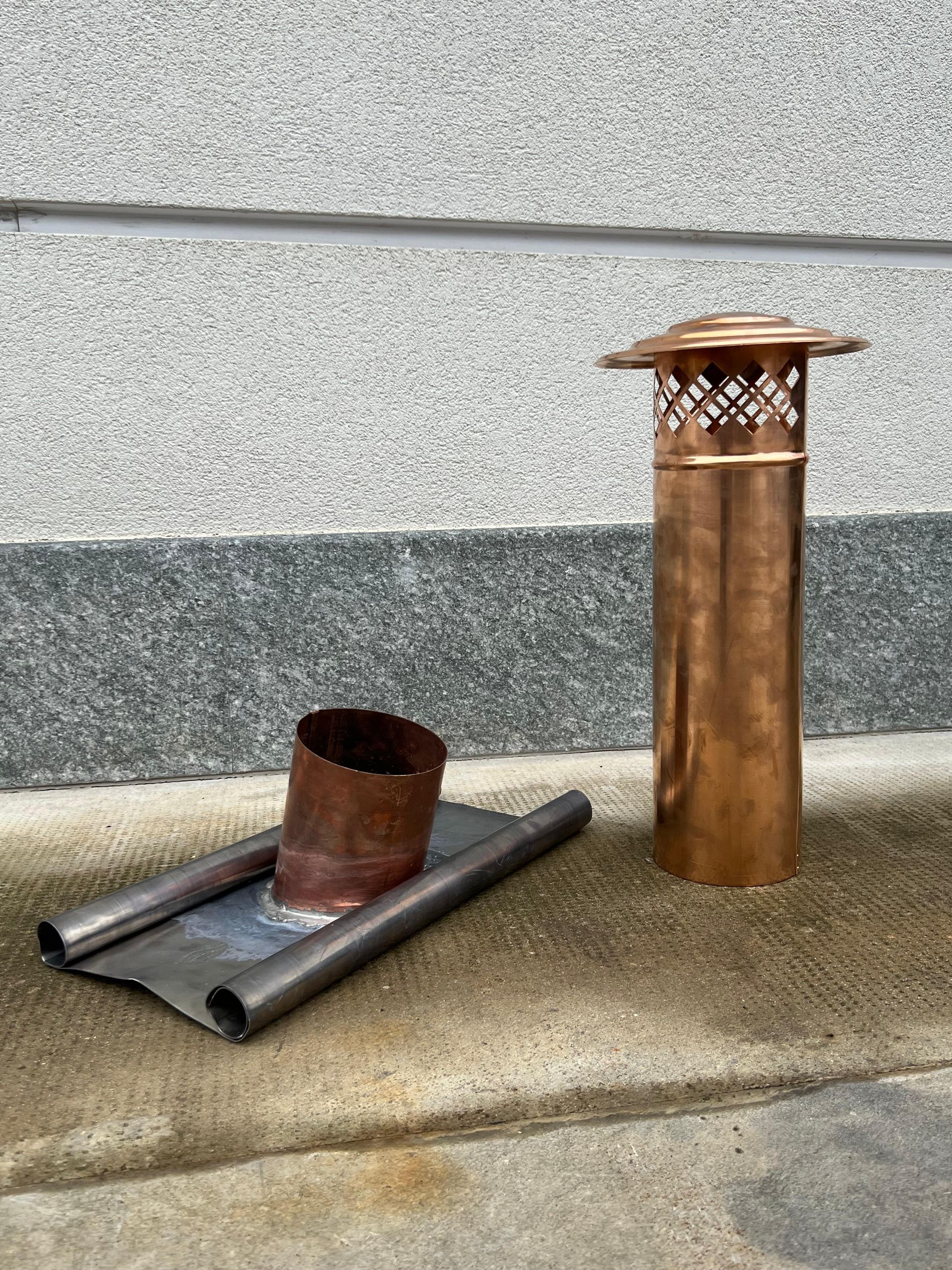 Produciamo a richiesta canali a disegno in rame, acciaio inox e lamiera preverniciata, oltre a camini e canne fumarie.